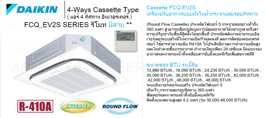 | D4C-04 | FCQ30EV2S-WD | 30,090 | 30-40 ตรม. | 18.30 | 89,773 บาท | -34,303 บาท | 55,470 บาท |